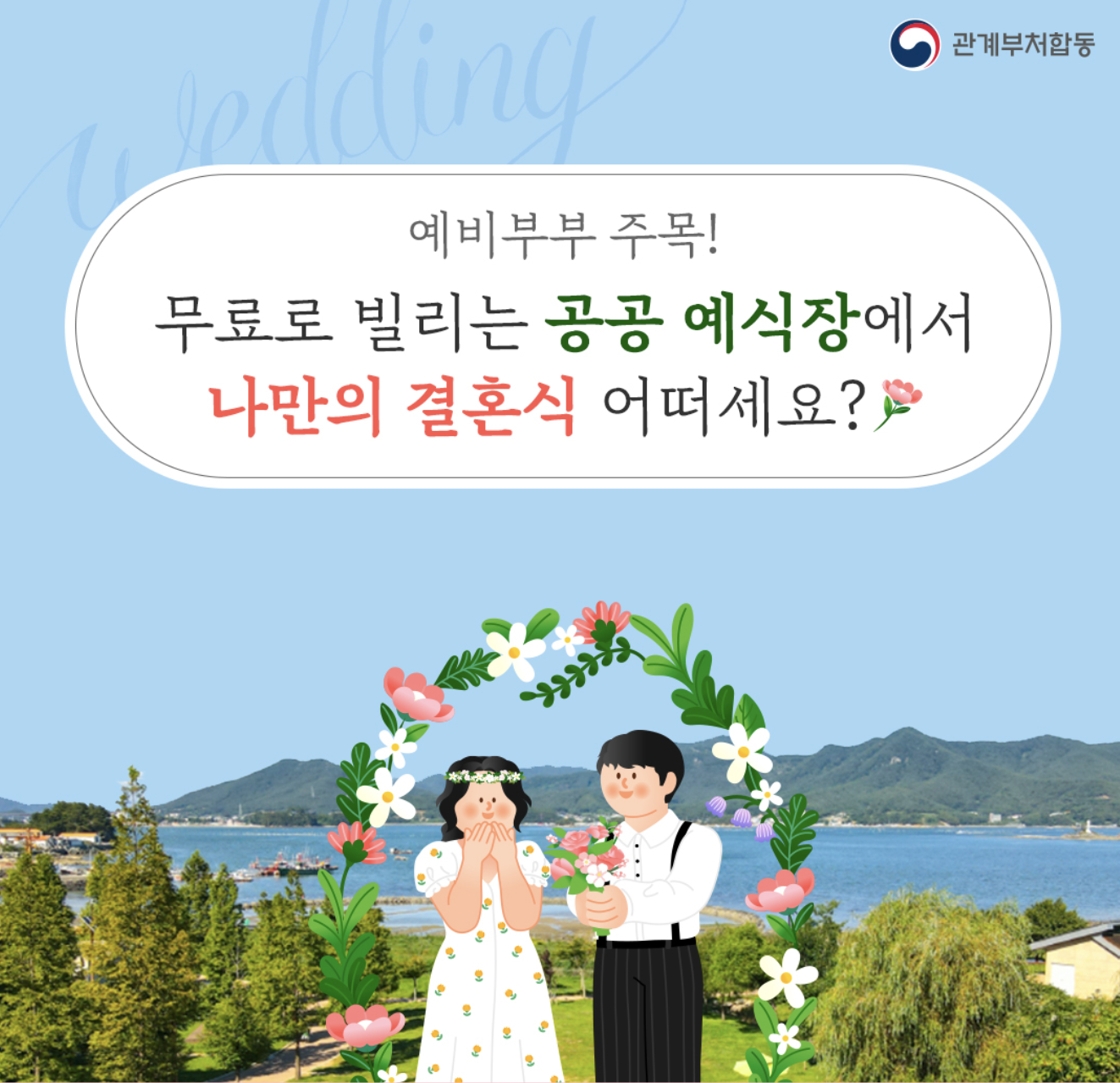 대부분의 사람들은 결혼식을 준비할 때 가장 먼저 예식장 예약을 떠올립니다. 그러나 요즘은 결혼식 시즌에 원하는 날짜를 예약하기 위해 1년 반 전에 미리 준비해야 하는 경우도 많습니다. 특히 결혼식이 몰리는 4~6월, 10~11월 시즌은 경쟁이 더욱 치열하죠. 이럴 때 공공기관에서 제공하는 이색적인 예식장을 활용하면 비용 부담도 줄이고 특별한 결혼식을 올릴 수 있습니다.