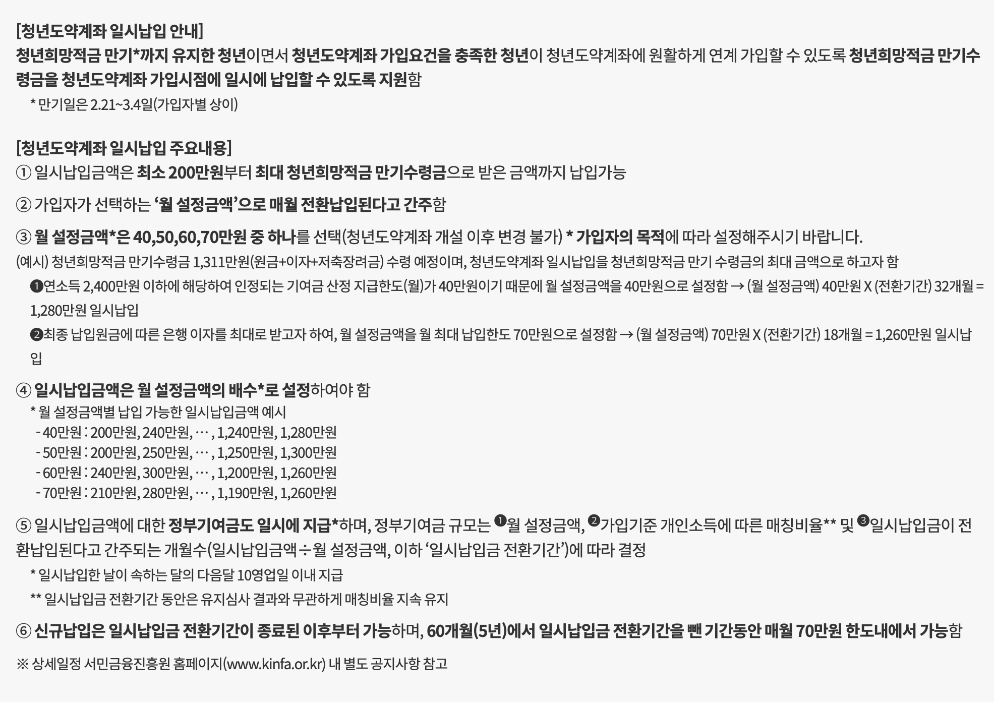 청년도약계좌 만기수령금의 청년 주택드림 청약 통장 일시 납입 허용, 이후 청약통장을 통한 청년 주택드림 대출 연계로 주택 자금 지원