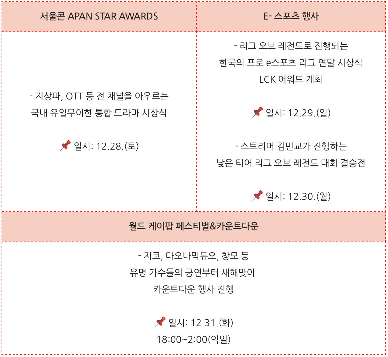 - 일정: 2024년 12월 28일(토) ~ 2025년 1월 1일(수)